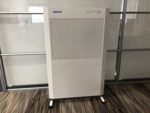 こちらは、超薄型パーティションタイプの業務用空気清浄機「クリーンパーティション」です。気流により、クリーン仕様と汚染除去仕様の2種類のラインナップがございます。室内清浄度の向上、作業台に設置しクリーンベンチとして、または排気ベンチとして、天井に取り付けFFUとして、様々な用途の利用できます。
