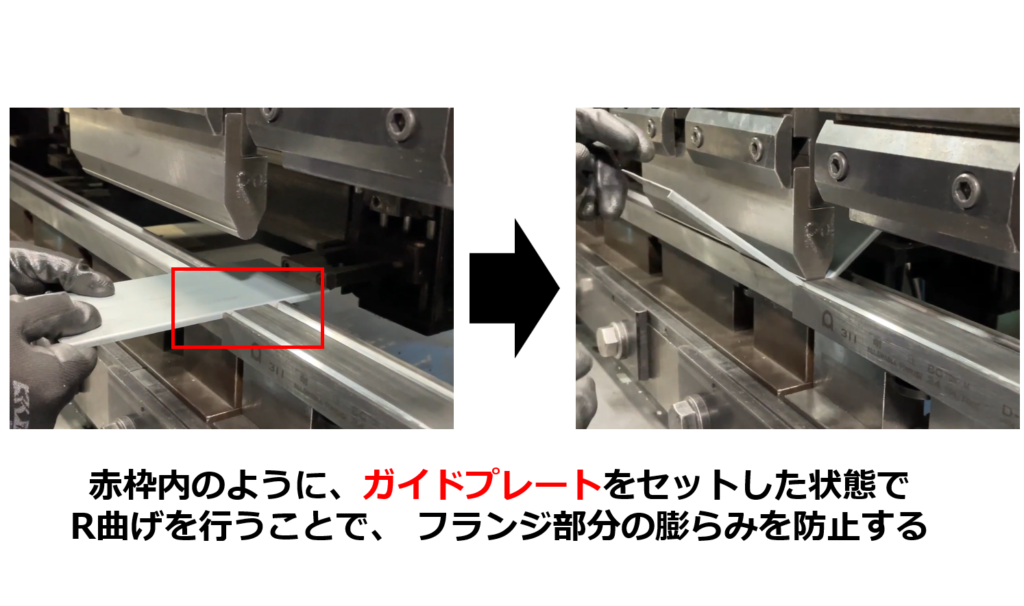 この際に、ガイドプレートで抑えた状態で、R曲げを行います。