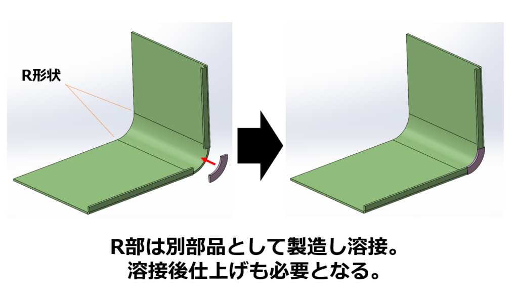 従来の対策:「R形状の部品」を個別に製作し、後から溶接で接合する